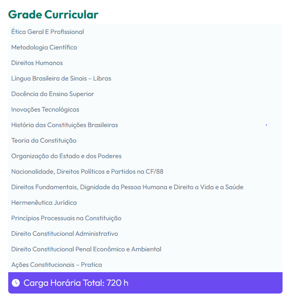 O curso de pós-graduação em Direito Constitucional visa aprofundar o conhecimento sobre a Constituição, sua interpretação e aplicação. O objetivo é formar especialistas capazes de analisar e solucionar questões jurídicas complexas relacionadas aos direitos fundamentais, organização do Estado, e o funcionamento das instituições públicas. Além disso, o curso busca desenvolver habilidades para atuar em processos legislativos, judiciais e administrativos, contribuindo para o aprimoramento da jurisprudência e da teoria constitucional no país.